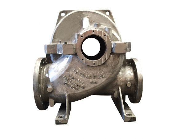 Pump housing in carbon steel alloy and stainless steel.